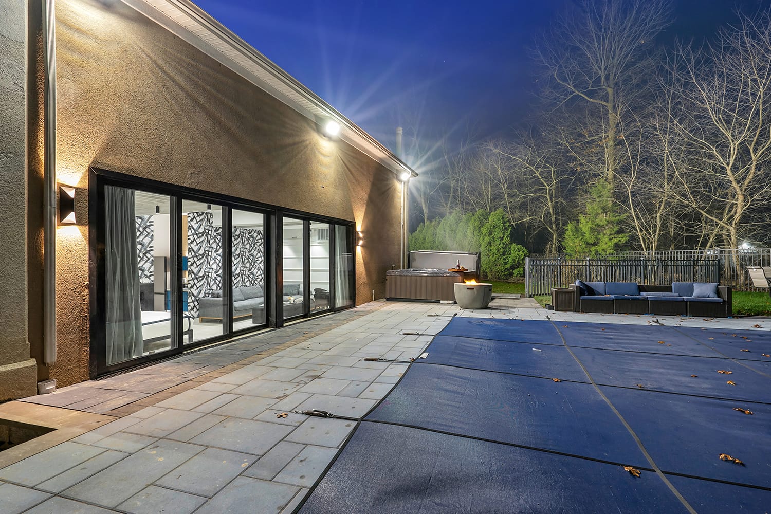 Set on a private one-acre property, this Shabbos-ready estate is designed for extended family weekends and group Shabbatons. An extra-large dining area and chef's kitchen can handle any crowd. Spaces are made for making memories, with luxe gathering areas throughout. There's something for everyone: adults enjoy the sauna and jacuzzi, while children explore the playground, expansive grassy yard, and gated pool area. Host everyone, compromise nothing.