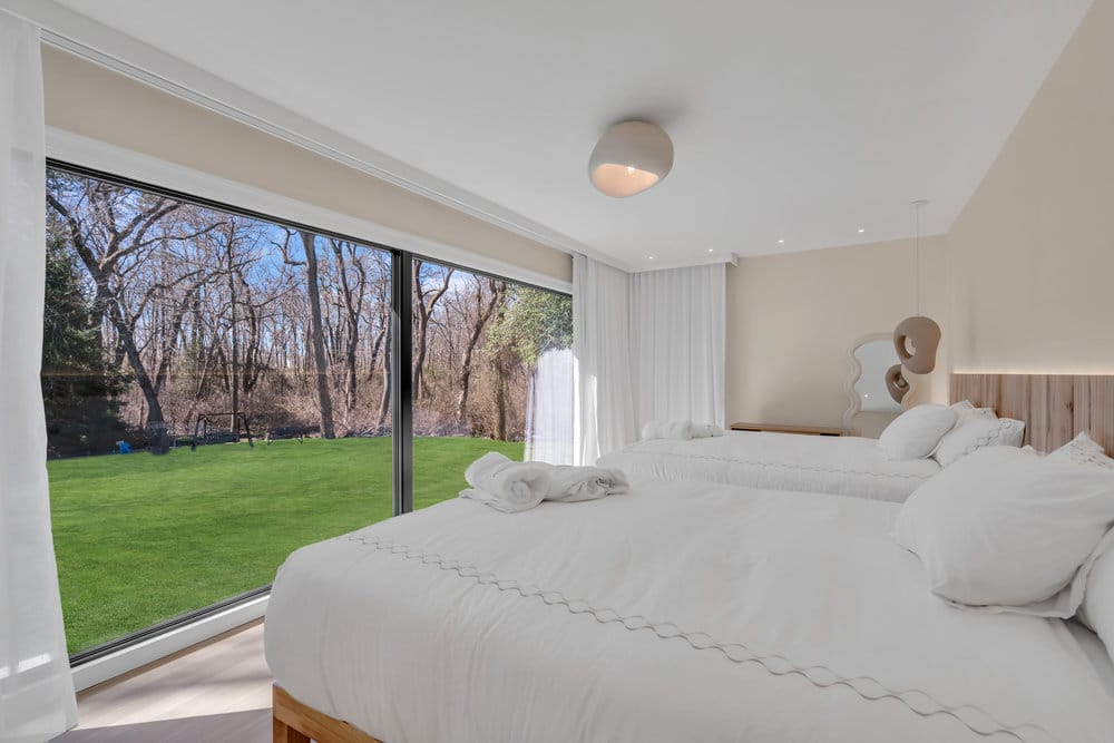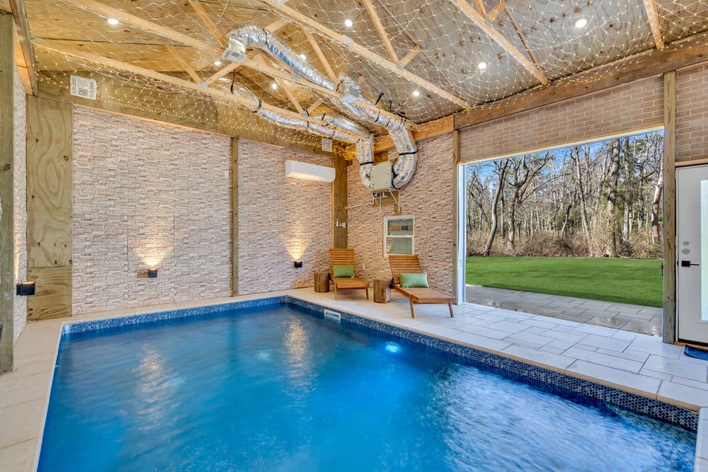 Set on a private 3/4-acre ranch-style lot, this secluded property offers a unique experience. Inside, the minimalist high-end interior features sun-drenched lounge and dining areas framing natural scenery, plus spa-grade bathrooms with a standalone soaking tub. The highlight: a newly-constructed indoor pool pavilion, heated year-round with a roll-up door for summer sunshine. Enjoy the deck jacuzzi with lake views or explore the grounds to find a small bridge and outdoor swing. Here, you can have it all.
