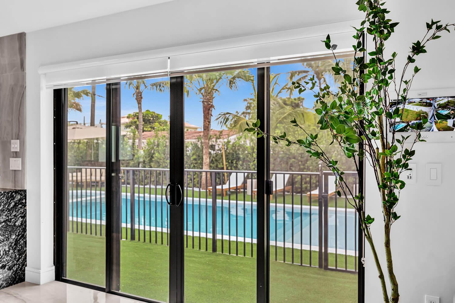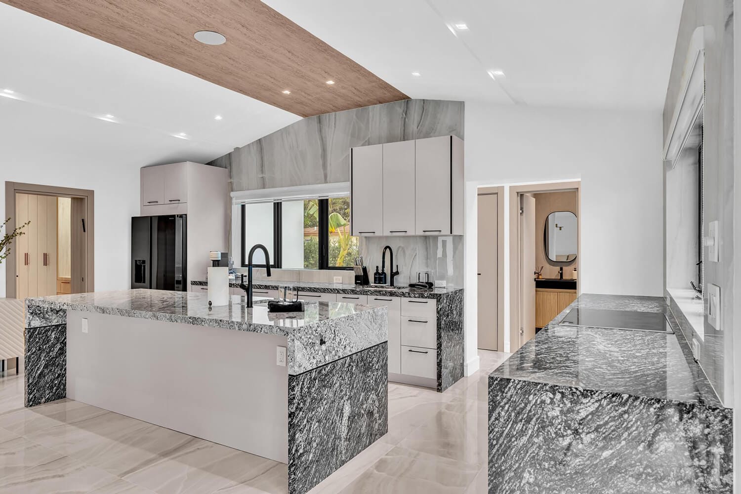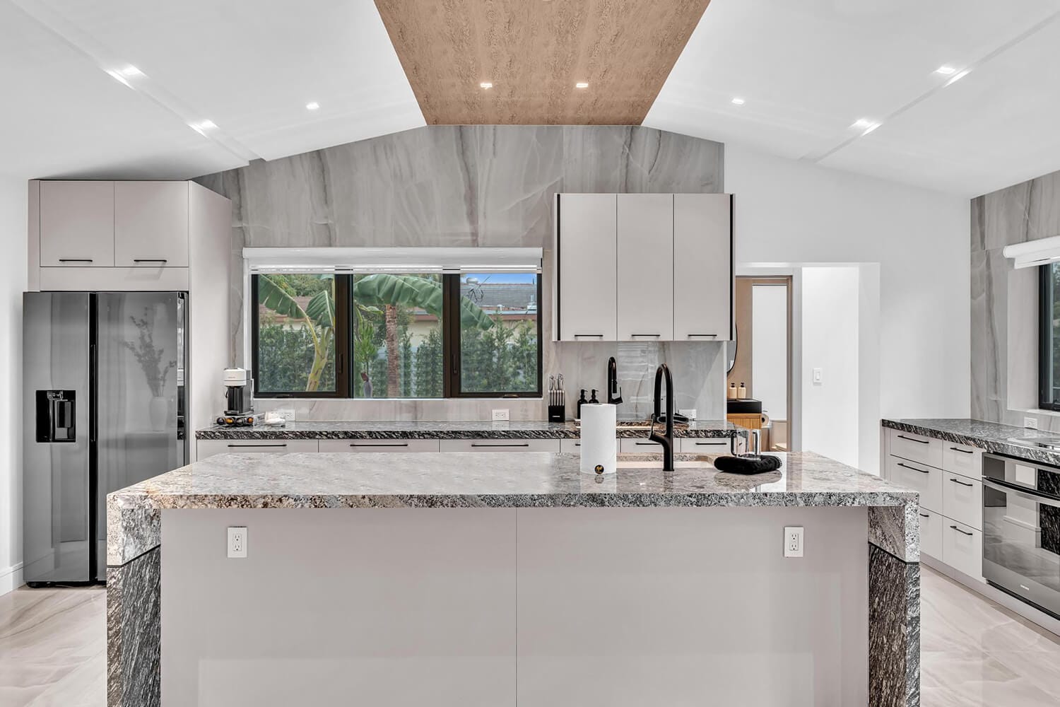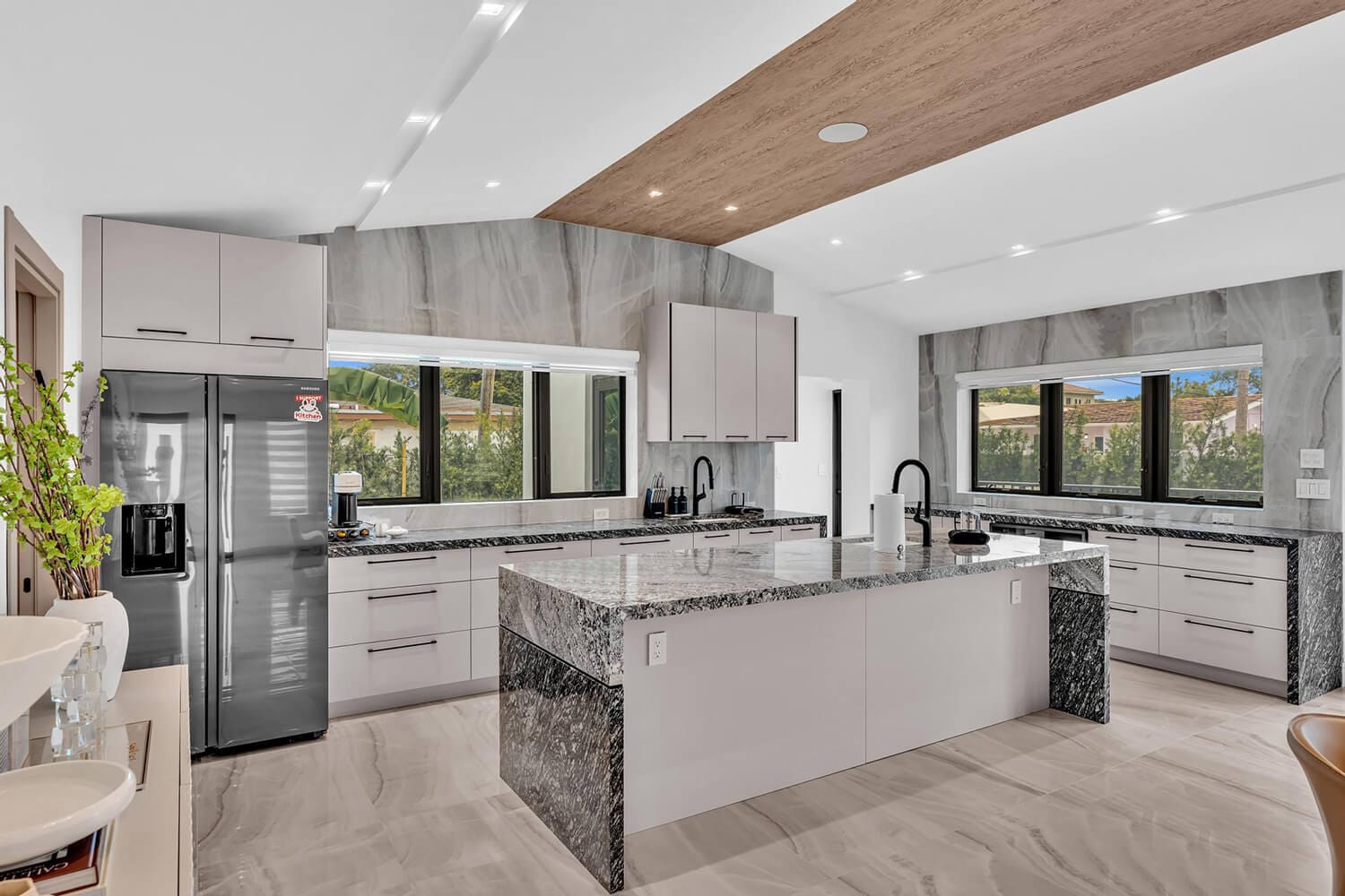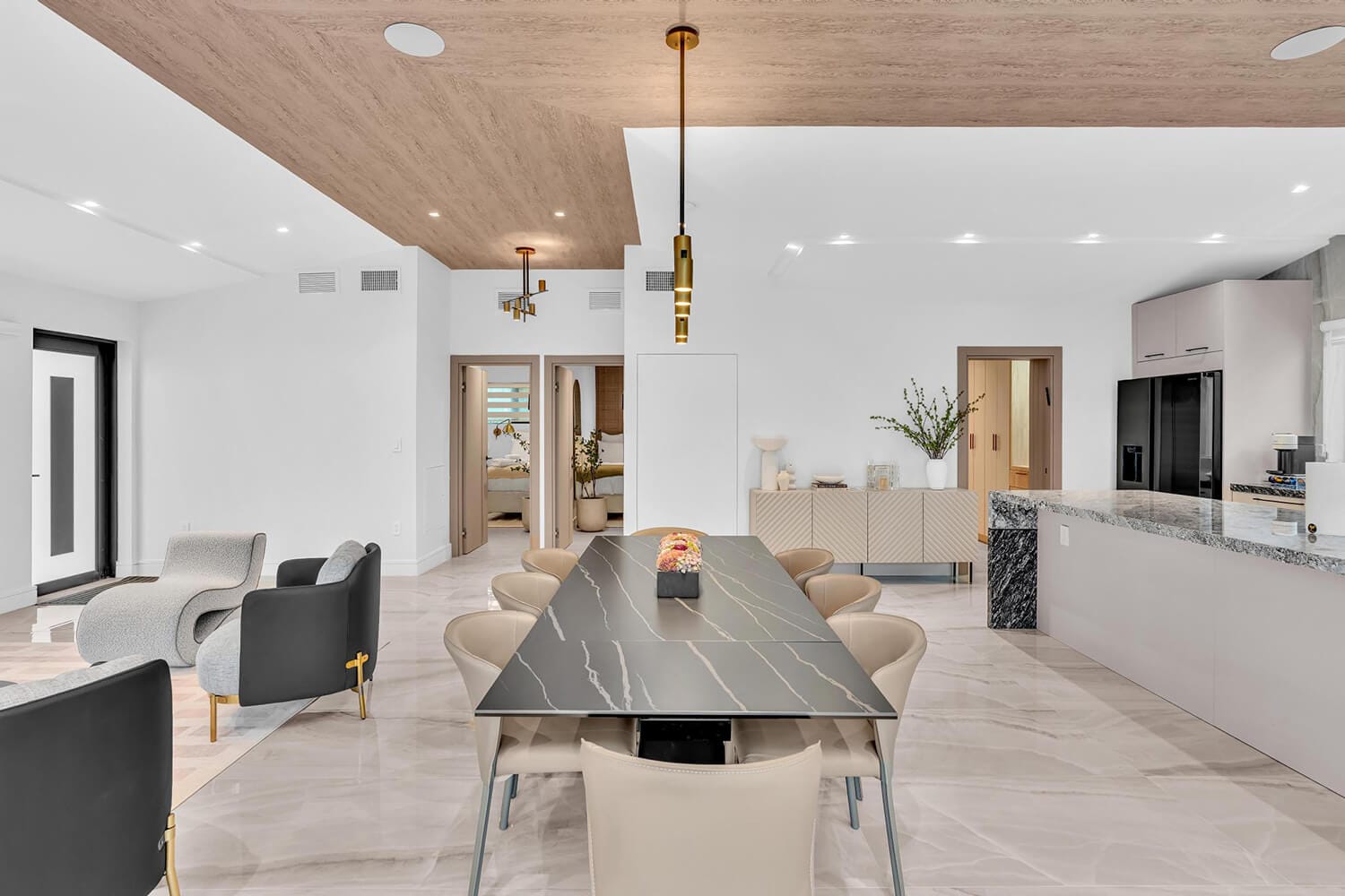 This family-sized villa blends sleek design with tropical living. An iconic pentagon-shaped pool and hot tub anchor the outdoor space, framed by palms and poolside furniture. Inside, you’ll find bright open interiors with natural wood accents, floor-to-ceiling windows, hotel-quality bedrooms, and spa-grade bathrooms. Enjoy local eateries, or cook up your own meals in the chef's kitchen. Everything you need for the perfect Florida escape.-