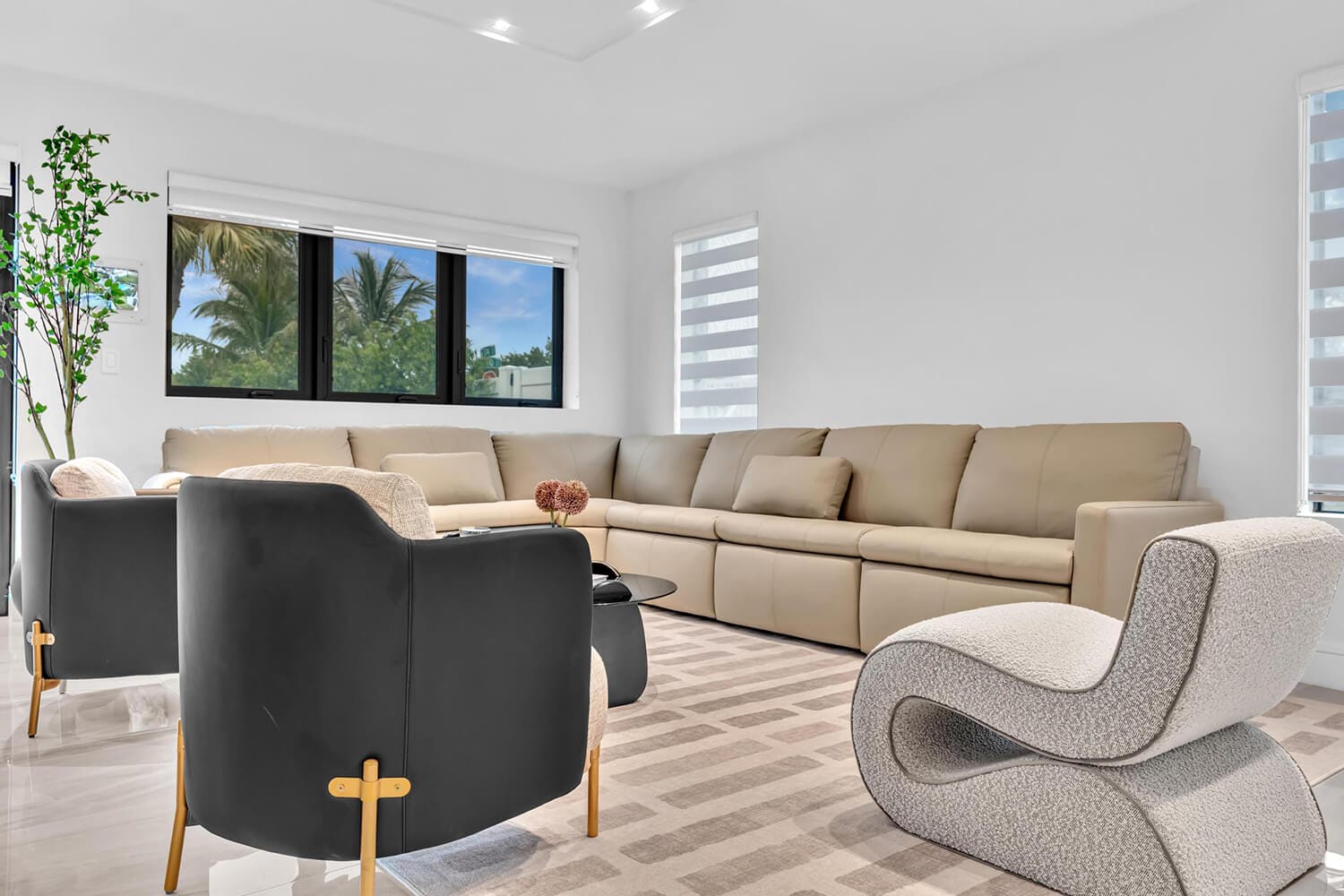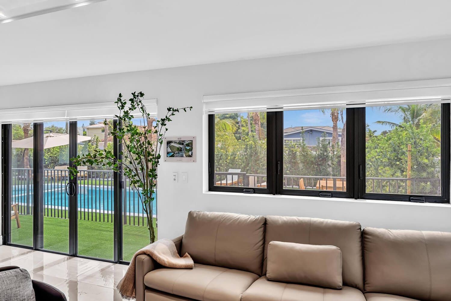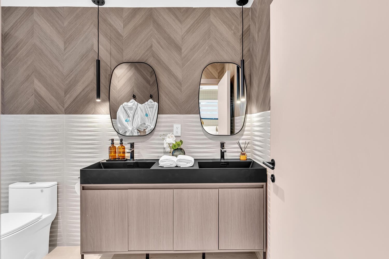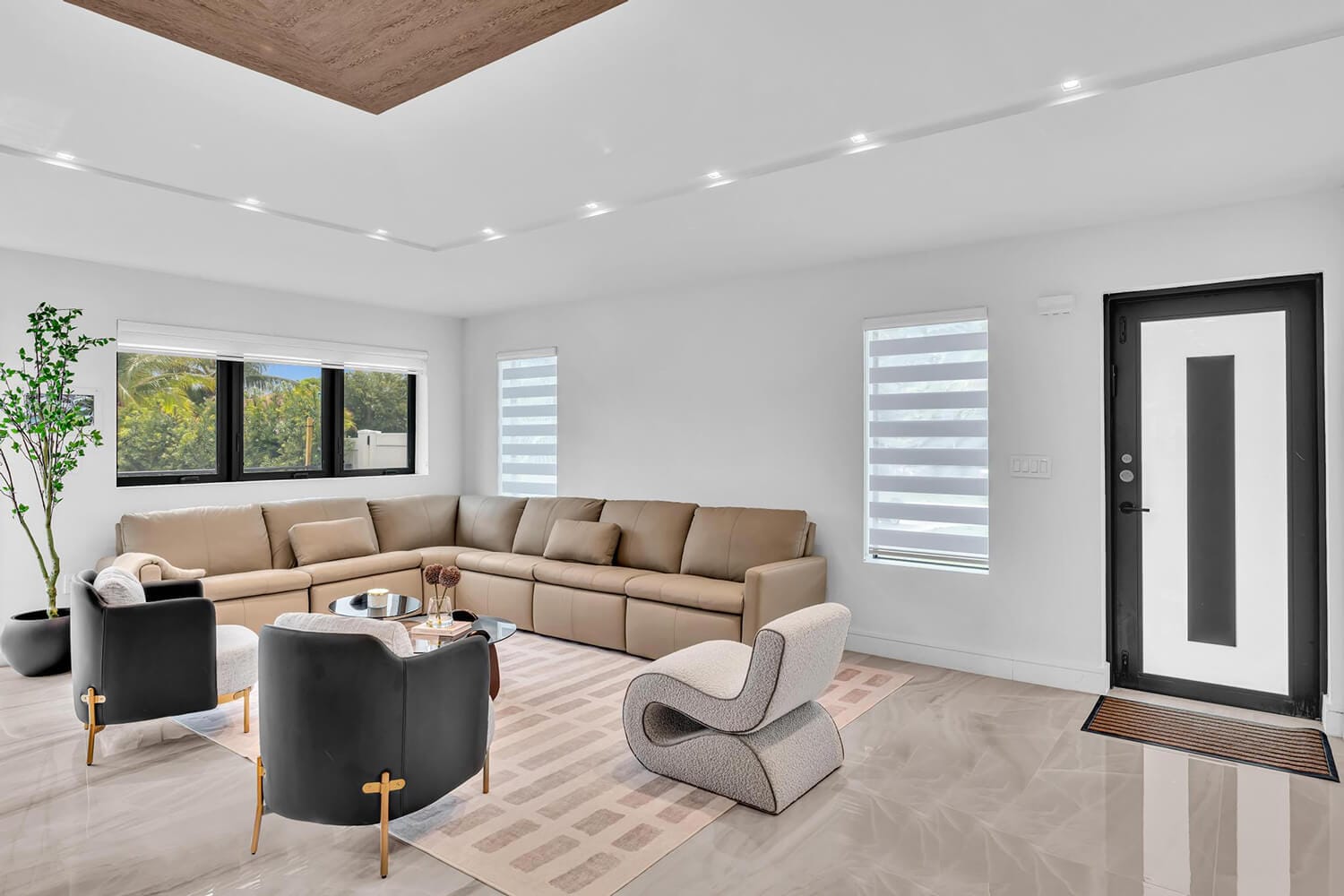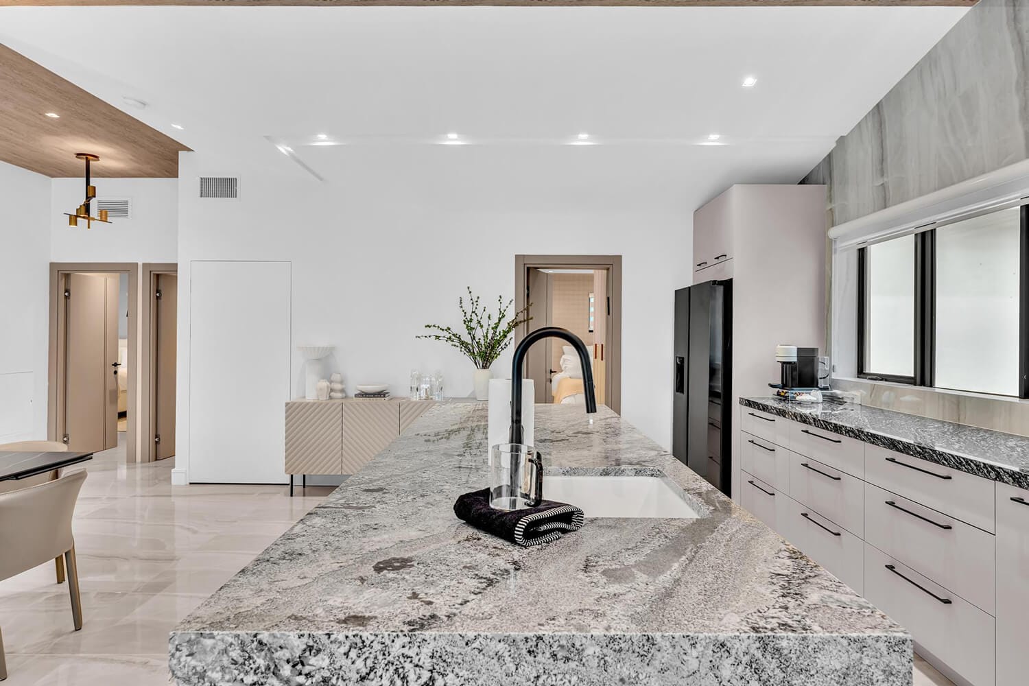 This family-sized villa blends sleek design with tropical living. An iconic pentagon-shaped pool and hot tub anchor the outdoor space, framed by palms and poolside furniture. Inside, you’ll find bright open interiors with natural wood accents, floor-to-ceiling windows, hotel-quality bedrooms, and spa-grade bathrooms. Enjoy local eateries, or cook up your own meals in the chef's kitchen. Everything you need for the perfect Florida escape.-