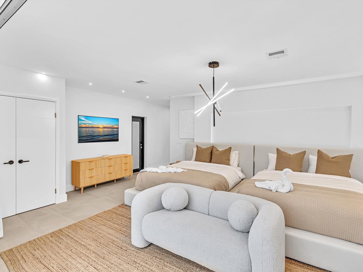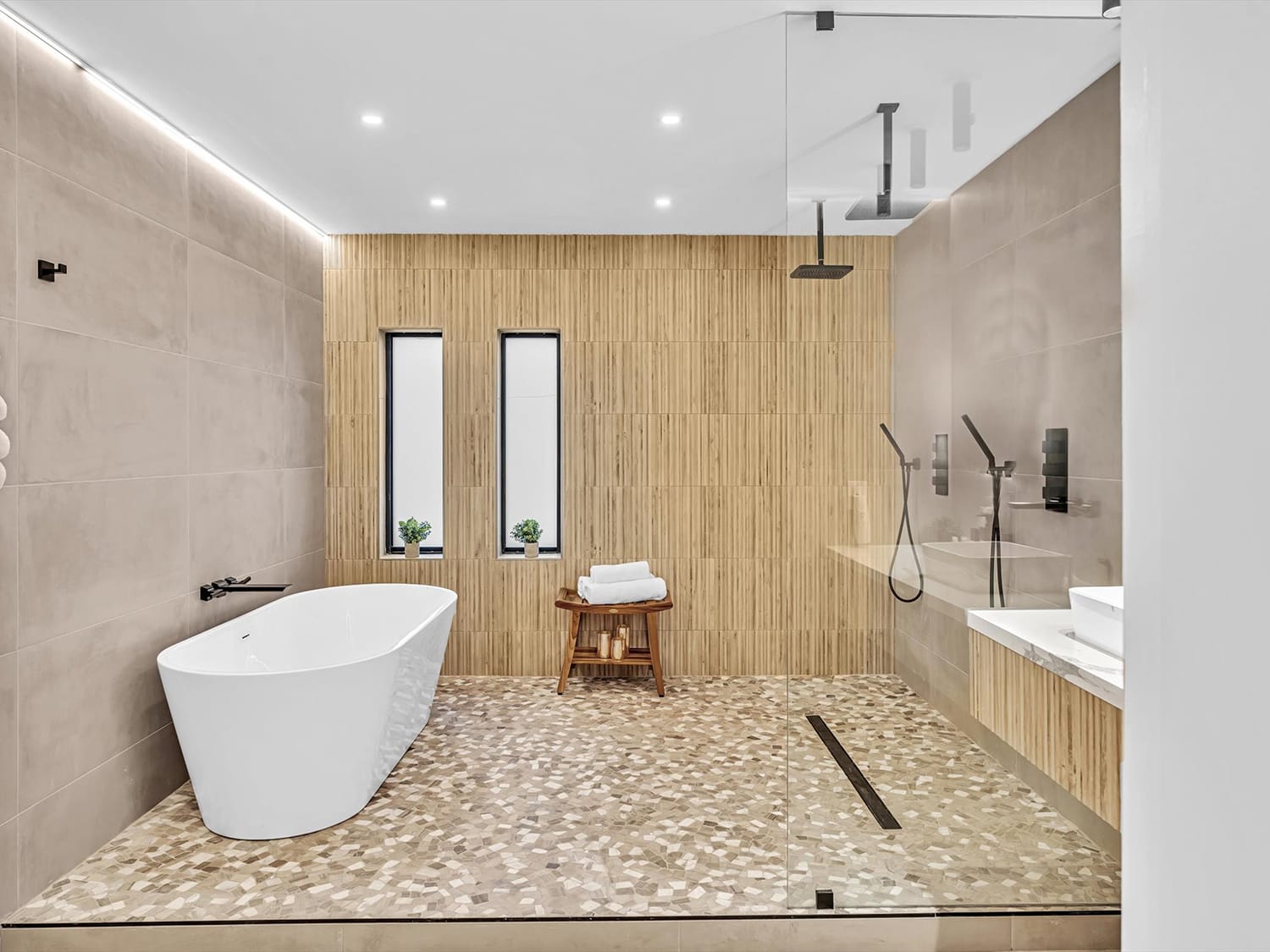Skip the hotel and enjoy this upscale private villa. Find an open-plan dining and lounge room, and spa-grade bathrooms. Wake up in the primary suite with floor-to-ceiling windows framing pool views. Outside, spend your days poolside — lounge on deck chairs, fire up the BBQ, dine al fresco by the pool and hot tub, all surrounded by tropical greenery. Have all the luxury, none of the crowds.